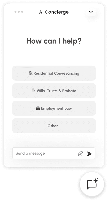 Our AI concierge chats with your website visitors in real time, answers their questions based on your company’s information, and guides them to submit a case-specific enquiry your team can pick up—so you never miss a lead.